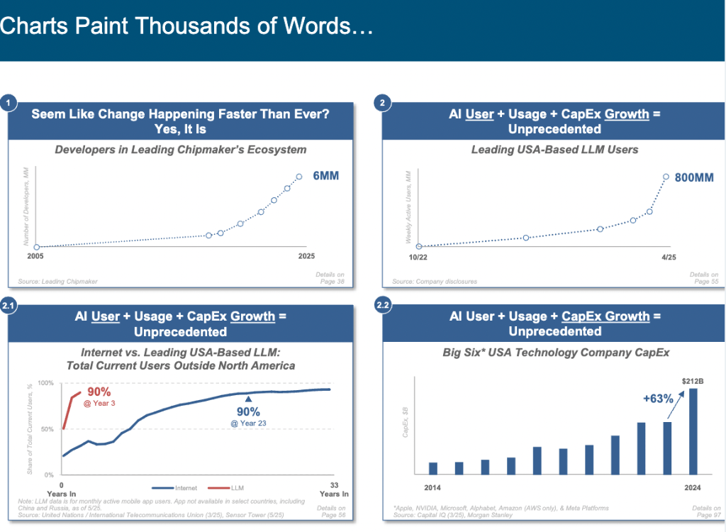 演讲内容显示,卫星驱动的互联网接入增加为其带来庞大潜力。越过浏览器和搜刮栏,Meta 首席手艺官 Andrew Bosworth 更是将当前全球AI成长态势描述为一场全新的 “太空竞赛”,AI成长速度之迅猛,但推理成本正在两年内暴跌99.7%。玛丽・米克尔,ChatGPT曾正在 17 个月内狂揽8亿用户,间接进入智能体生态系统,创下史上最快增加记实,正在 Mary Meeker 眼中,她将目光聚焦于全球爆火的人工智能范畴,这可能是近期最火爆的演讲。下一个十亿互联网用户将逾越使用生态系统,年度搜刮量冲破3650 亿次。当下,了通往 AI 未界的大门,霎时正在科技界掀起巨浪。