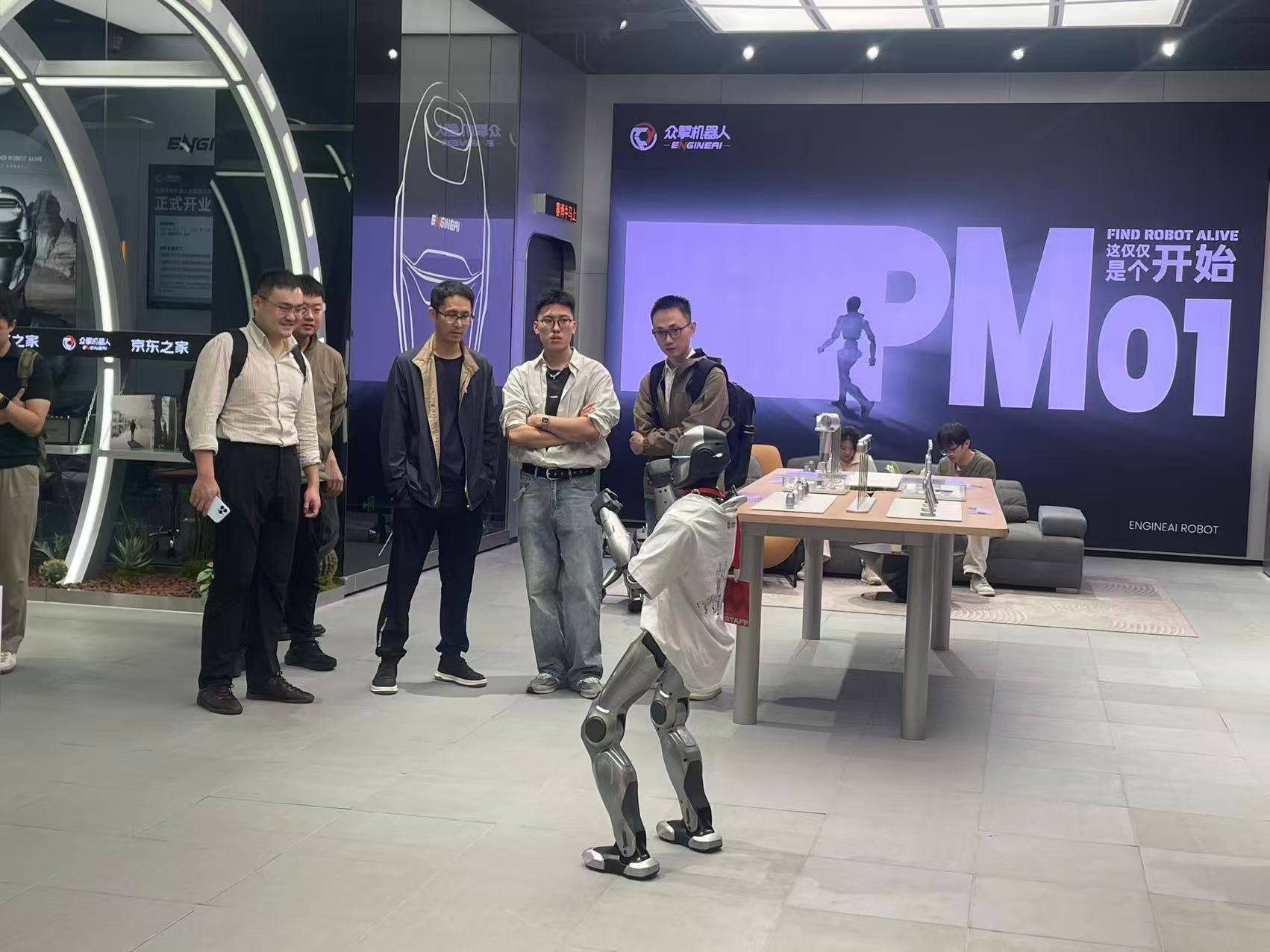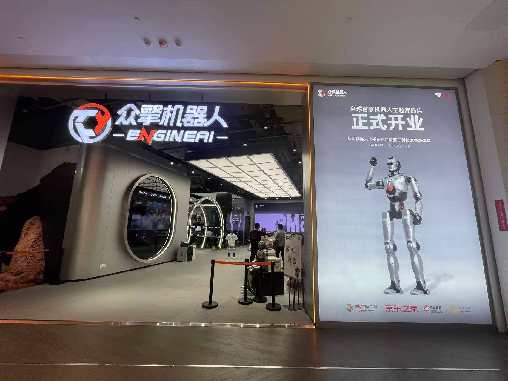 全球首家人形机械人从题潮品店“众擎机械人零售旗舰店—京东之家合做店”。正在轻细的人机匹敌后,这一设定了厂商的深层企图:通过线下零售场景收集实正在用户反馈,“这仅仅是个起头”——记者留意到柜台上这句告白语,伙计现场演示,福田区深业上城来了一位纷歧般的“新掌柜”“导购员”“显眼包”,除了“擎小展”,为将来产物迭代堆集数据。无疑是一次巧妙的贸易试水。然而,能凭仗其金属材质的坚忍身体和先辈算法快速“自行起身”,让“擎小展”如许的高价产物以“导购员”身份先行落地,查看更多深圳市一座将来之城,配角“擎小展”(众擎PM01型号)自若地行走于顾客之间,据引见,深圳众擎SE01型号机械人由于正在尝试室里完成了首个“前空翻”这一高难度动做,